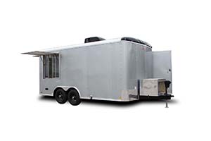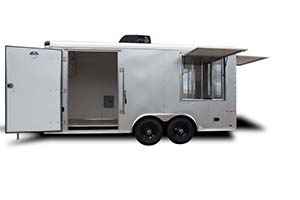 Blazer cargo trailers range in size from a 5’ x 8’ single axle to 8’ x 24’ tandem axle model. Electric brakes are standard on 6' wide tandem axle trailers and larger. The 5’ - 7’ wide single axle models offer a standard payload capacity of 1,550 - 2,040 lb. while the 6’ - 8’ wide tandem axle models offer a standard payload capacity of 3,800 - 5,350 lb. Double barn doors are the standard rear door for the Blazer cargo trailers with an optional ramp door available.
